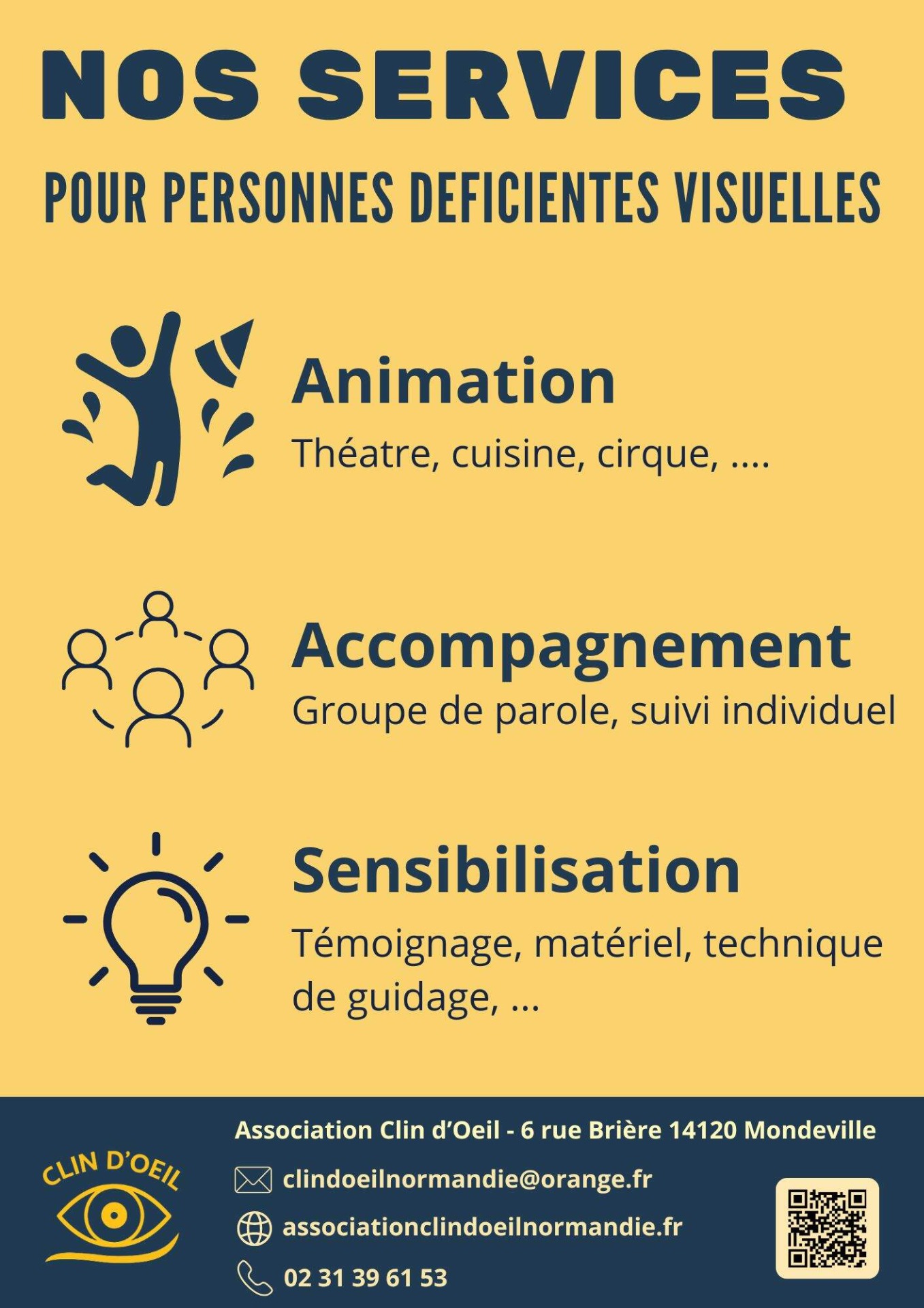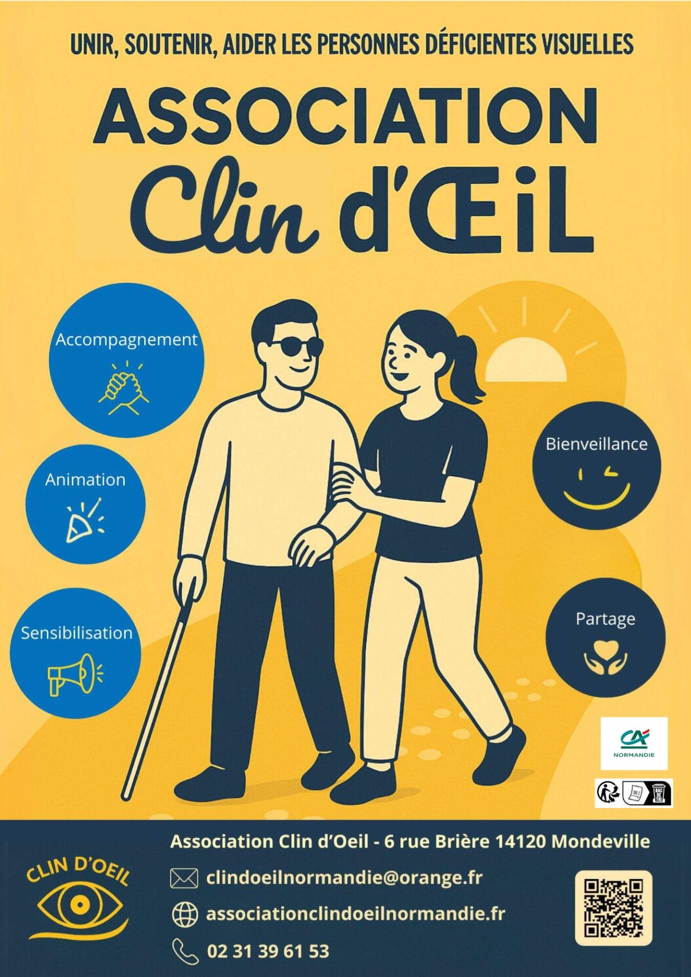 Clin d'oeil a pour but d'unir, soutenir et aider les personnes malvoyantes et non-voyantes dans leur vie quotidienne.